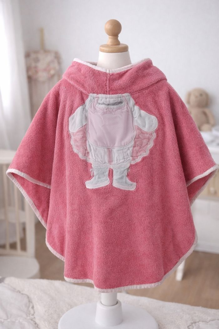 Joli poncho de bain enfant en éponge rose, très doux et absorbant 🌸
