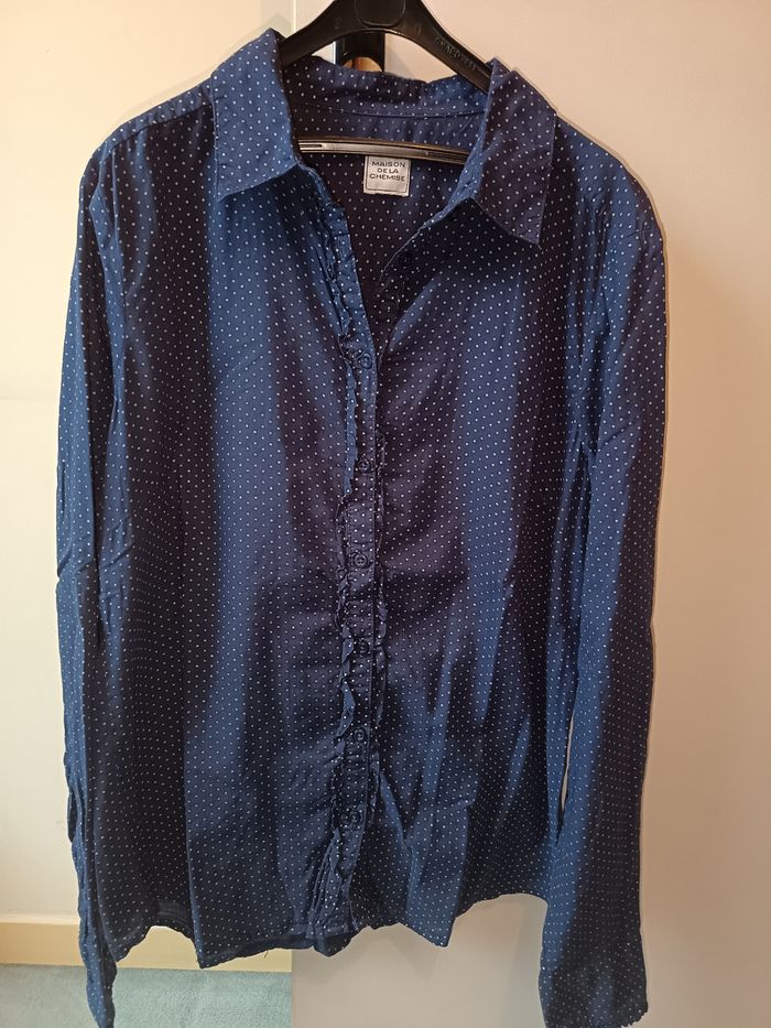 Chemise bleue à pois