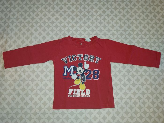 T-shirt Mickey Disney Baby 2 ans (92 cm) rouge – manches longues – renforts coudes - photo numéro 1