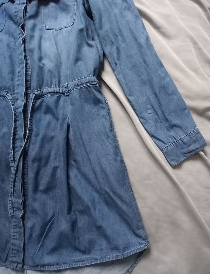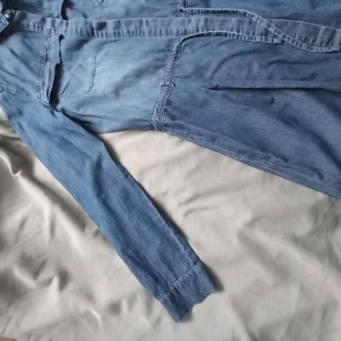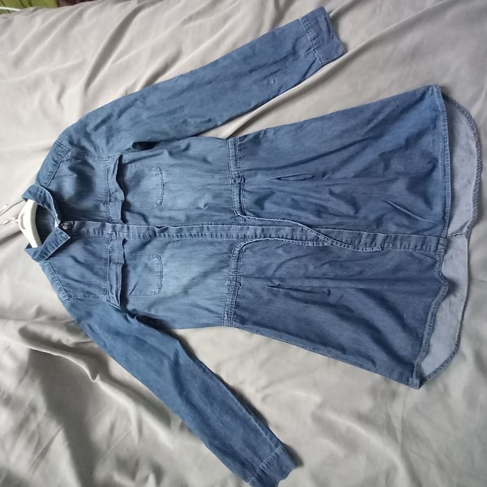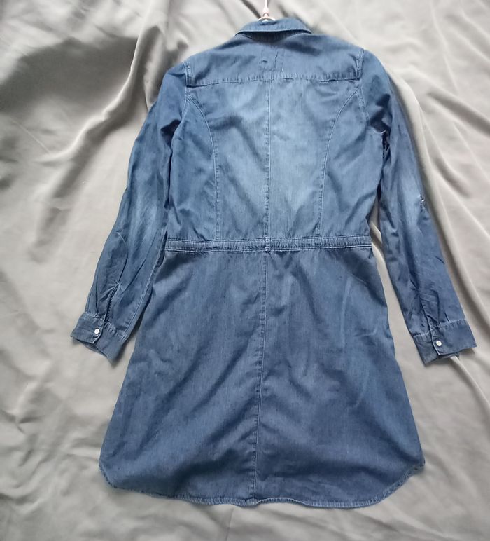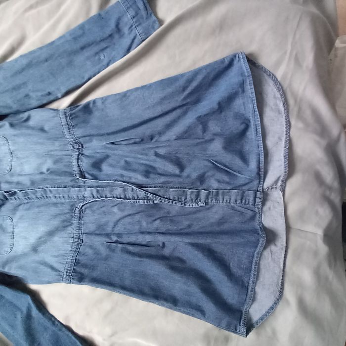 - Robe Promod Authentic since 1975, manches longues pouvant être raccourcies avec bouton pression et patte, col, coloris bleu, boutons pression, 2 poches avec rabat, cordon de serrage, 2 poches latérales, étiquette de composition coupée, largeur épaules 38 cm - aisselles 48 cm, Longueur épaule-bas 86 cm- aisselles-bas 63 cm