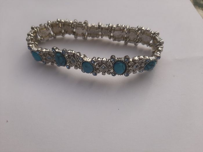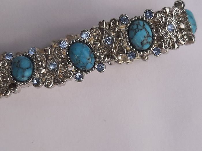 Bracelet métal argenté et turquoises
