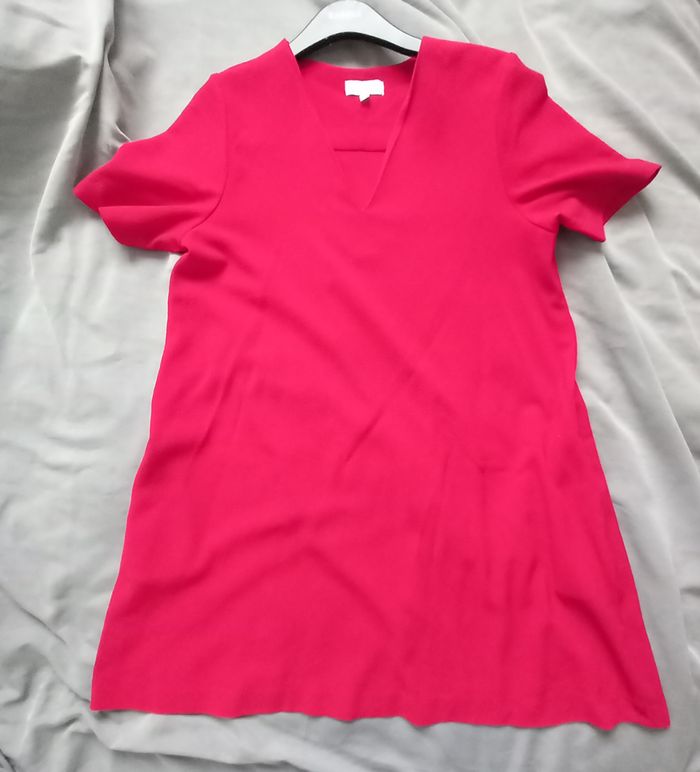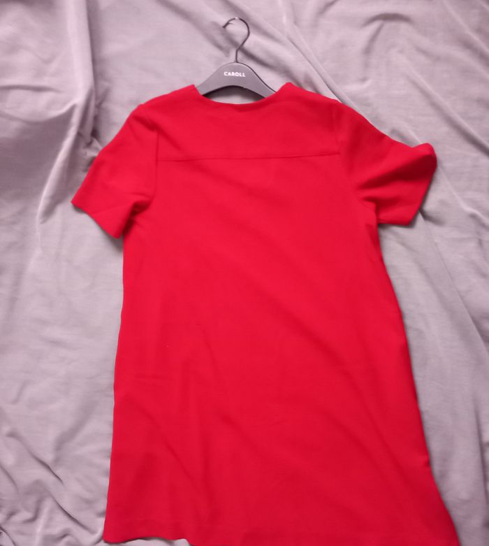 - Robe La Redoute RR manches courtes, col en V, coloris rouge, à enfiler, 2 poches, étiquette de composition coupée, largeur épaules 38 cm - aisselles 52 cm, Longueur épaule-bas 87cm- aisselles-bas 65 cm