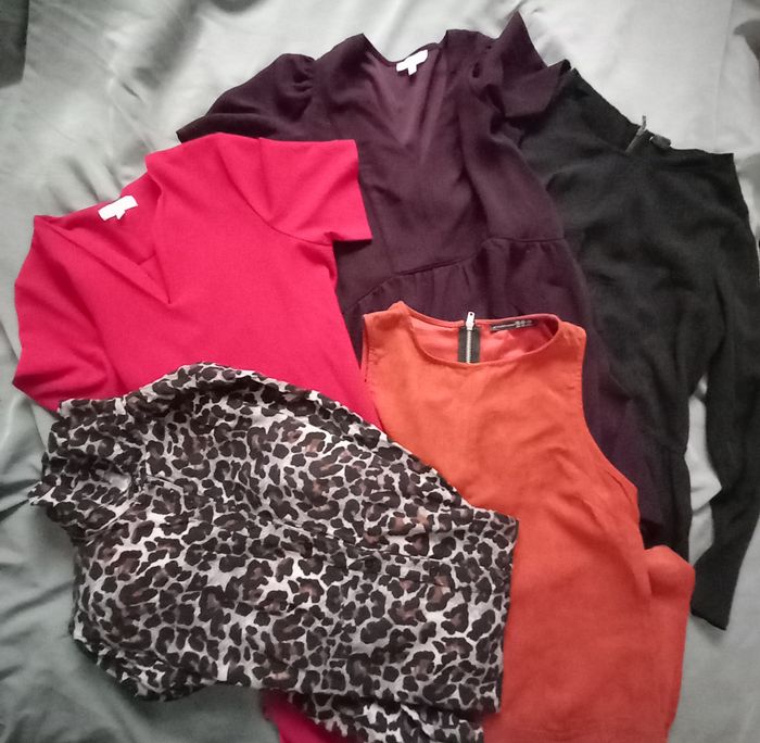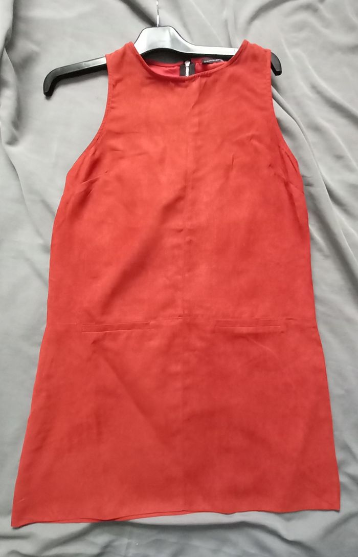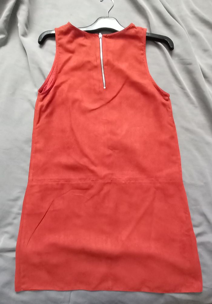 - Robe sans manches Atmosphere, coloris rouille, Zip au dos, étiquette de composition coupée, tissu velours lisse,largeur épaules 31 cm - aisselles 49 cm Longueur épaule-bas 86 cm- aisselles-bas 63 cm