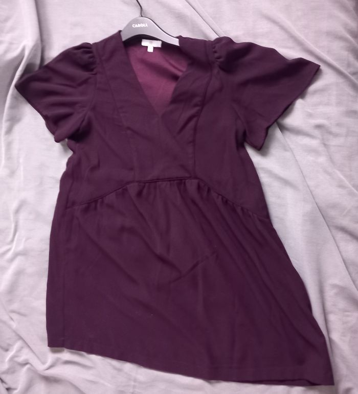 - Robe la Redoute RR manches courtes volantées, col en V, coloris lie de vin, à enfiler, 100% polyester recyclé, 2 poches, largeur épaules 33 cm - aisselles 51 cm, Longueur épaule-bas 84 cm- aisselles-bas 66 cm