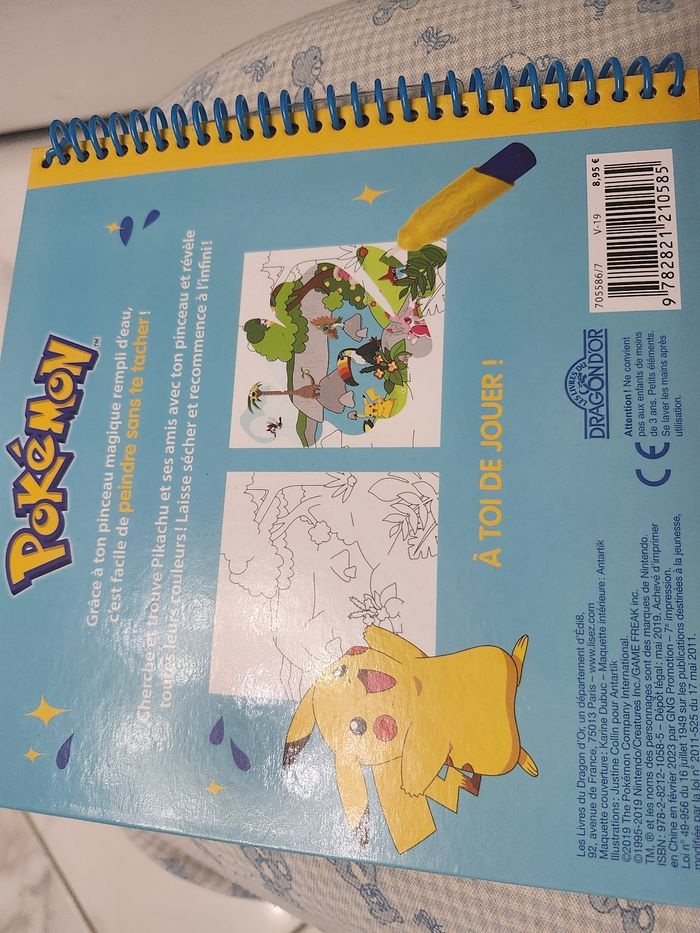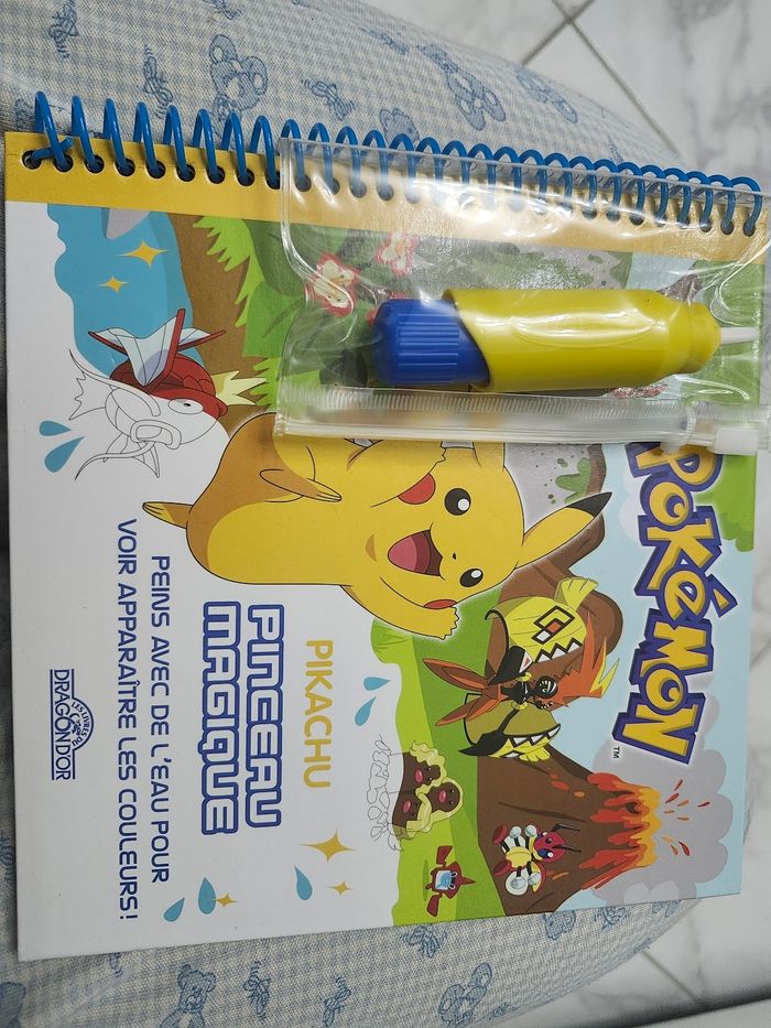Neuf. N’hésitez pas à faire des lots . Peins avec de l'eau et regarde les Pokémon apparaître en couleurs ! C'est magique ! Il te suffit de remplir ton pinceau avec de l'eau, puis de le passer sur les six décors magiques de ton carnet pour voir apparaître tes Pokémon préférés : Pikachu et ses amis. Attends un peu : les couleurs disparaissent à nouveau pour que tu puisses recommencer à l'infini ! Une nouvelle manière de peindre à l'eau sans se tacher !