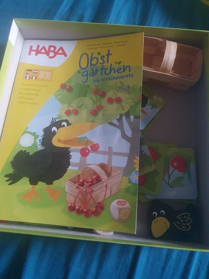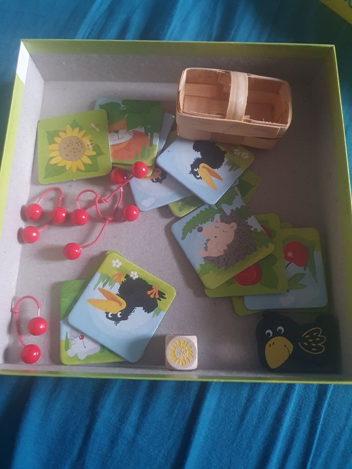 Jeu du verger Manque le plateau de jeu, le cerisier ,1 séparation Sinon le reste complet