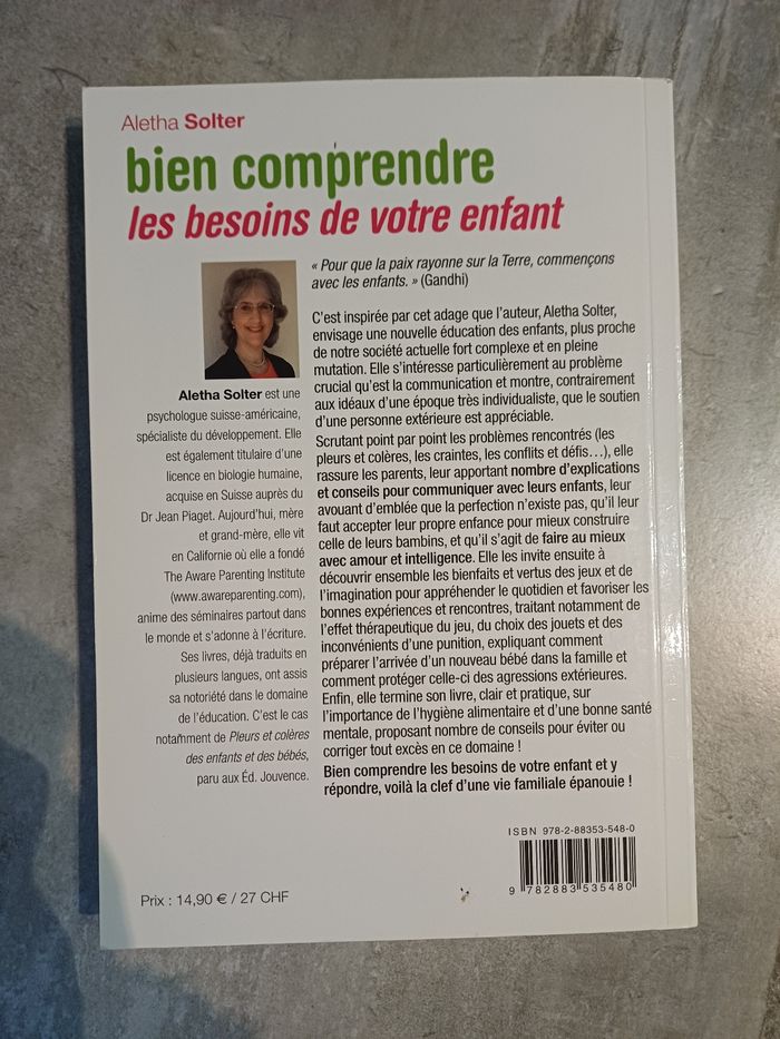Pour Que La Paix Rayonne Sur La Terre, Commençons Avec Les Enfants. Gandhi. C'est Inspirée Par Cet Adage Que L'auteur, Aletha Solter, Envisage Une Nouvelle éducation Des Enfants, Plus Proche De Notre Société Actuelle Fort Complexe Et En Pleine Mutation. Elle S'intéresse Particulièrement Au Problème Crucial Qu'est La Communication Et Montre, Contrairement Aux Idéaux D'une époque Très Individualiste, Que Le Soutien D'une Personne Extérieure Est Appréciable. Scrutant Point Par Point Les Problèmes Rencontrés (les Pleurs Et Colères, Les Craintes, Les Conflits Et Défis...), Elle Rassure Les Parents, Leur Apportant Nombre D'explications Et Conseils Pour Communiquer Avec Leurs Enfants, Leur Avouant D'emblée Que La Perfection N'existe Pas, Qu'il Leur Faut Accepter Leur Propre Enfance Pour Mieux Construire Celle De Leurs Bambins, Et Qu'il S'agit De Faire Au Mieux Avec Amour Et Intelligence. Elle Les Invite Ensuite à Découvrir Ensemble Les Bienfaits Et Vertus Des Jeux Et De L'imagination Pour Appréhender Le Quotidien Et Favoriser Les Bonnes Expériences Et Rencontres, Traitant Notamment De L'effet Thérapeutique Du Jeu, Du Choix Des Jouets Et Des Inconvénients D'une Punition, Expliquant Comment Préparer L'arrivée D'un Nouveau Bébé Dans La Famille Et Comment Protéger Celle-ci Des Agressions Extérieures. Enfin, Elle Termine Son Livre, Clair Et Pratique, Sur L'importance De L'hygiène Alimentaire Et D'une Bonne Santé Mentale, Proposant Nombre De Conseils Pour éviter Ou Corriger Tout Excès En Ce Domaine ! Bien Comprendre Les Besoins De Votre Enfant Et Y Répondre, Voilà La Clef D'une Vie Familiale épanouie !