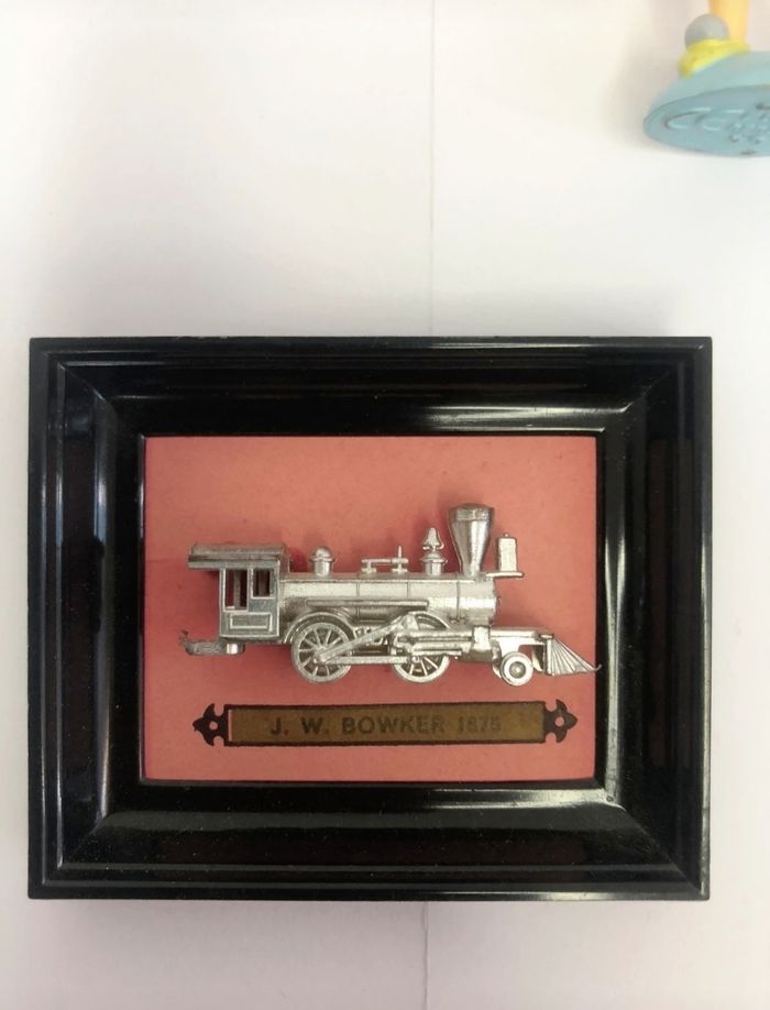 Petit cadre publicitaire locomotive J.W. Bowker 1875