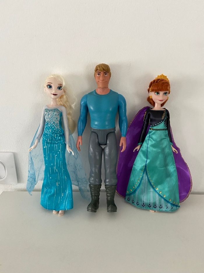 Vends lot complet des 3 personnages principaux de l'univers Disney La Reine des Neiges, idéal pour recréer les scènes cultes du film