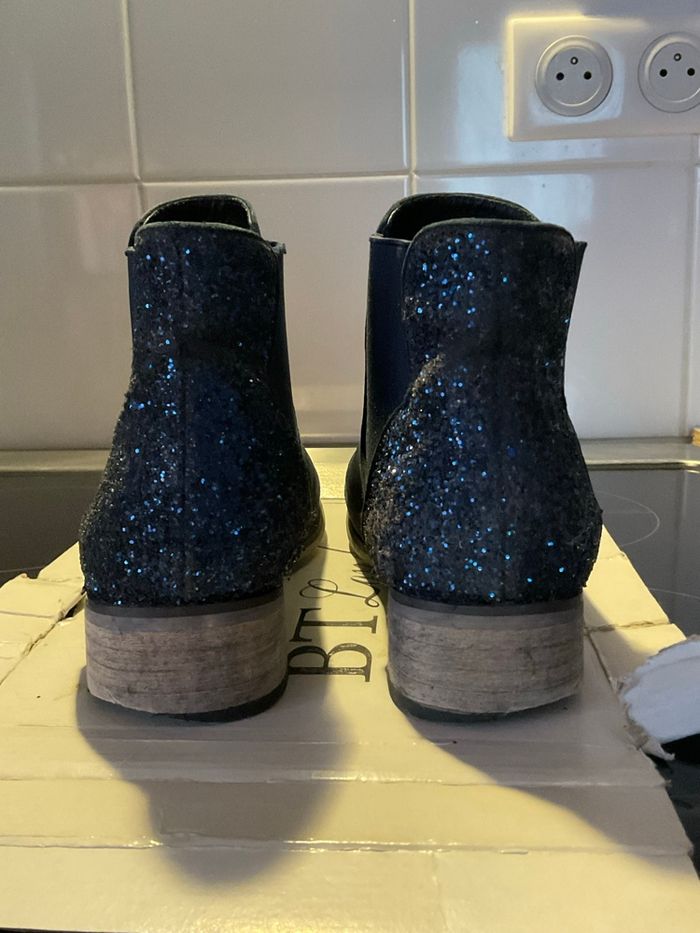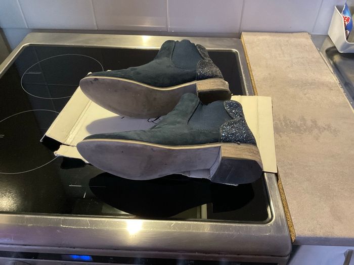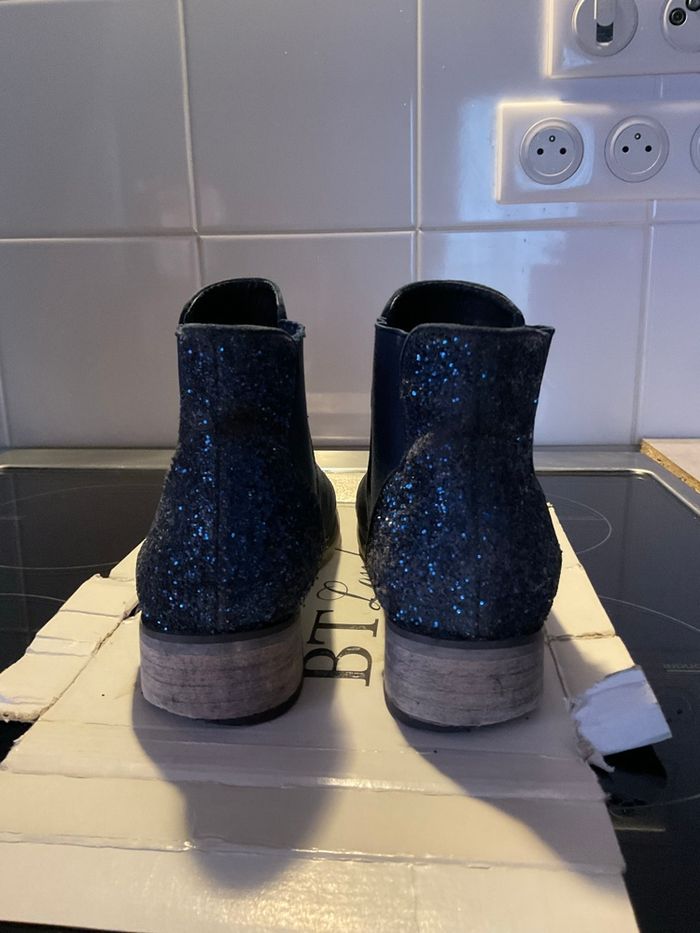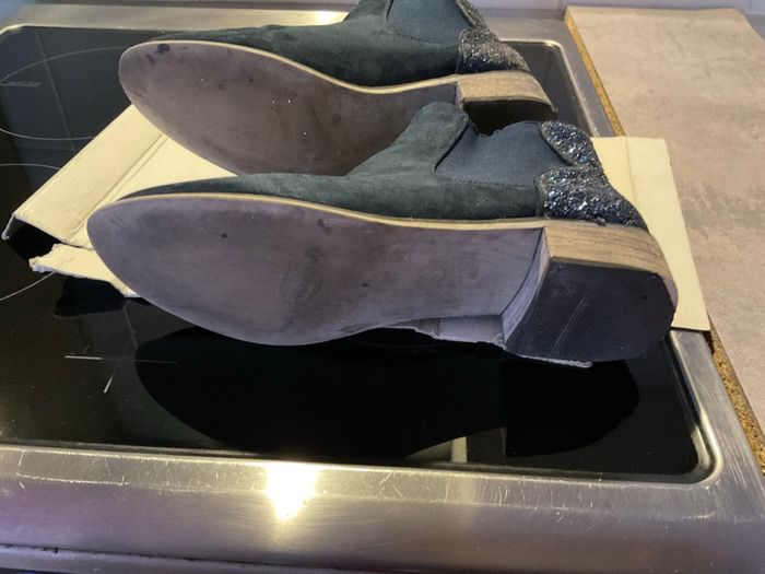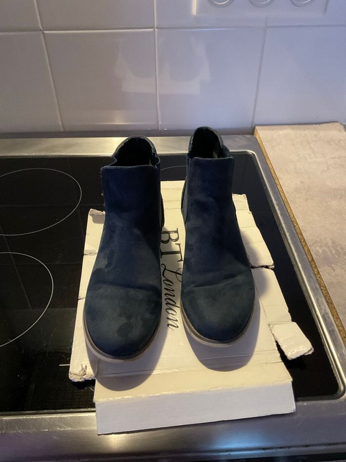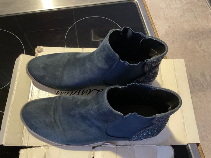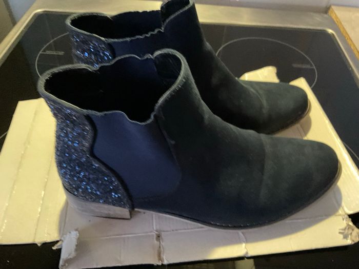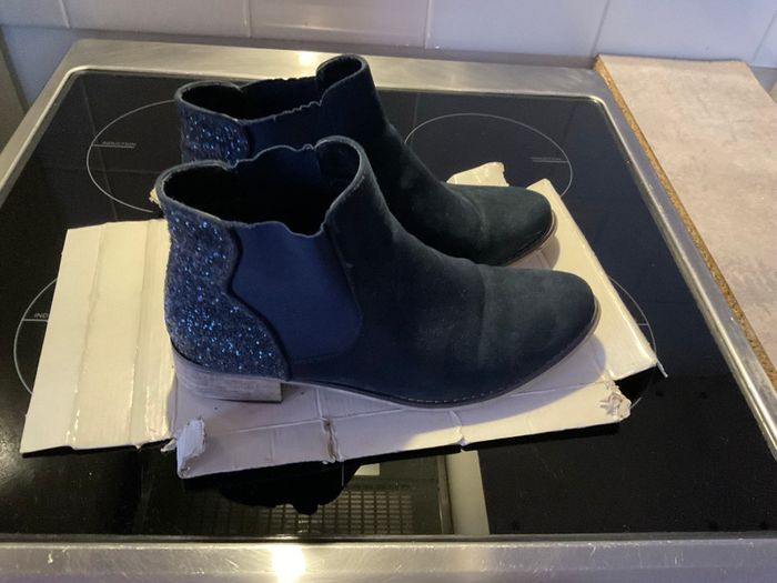 Bottines bleu marine en daim avec strass derrière