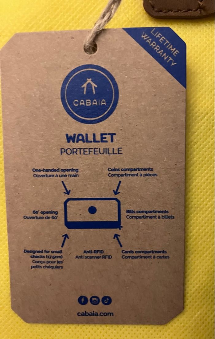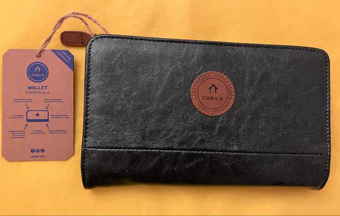 Portefeuille Taille L Marque Cabaia, modèle Lucerne Neuf avec étiquettes Grand dedans, discret dehors Dimensions : 21cm x 13cm x 3cm Caractéristique : Peut contenir passeport, carte d'identité et permis de conduire Garanti à vie Fermeture zippée Protection RFID Pochette intérieure zippée pour les pièces Pochette plaquée pour les billets 10 fentes pour les cartes Ouverture à soufflet Vegan et déperlant