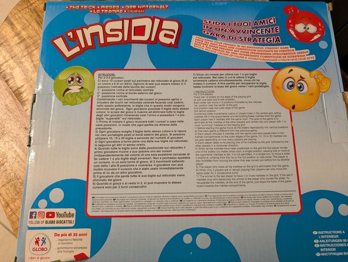 Découvrez "L'insidia", un jeu de stratégie captivant qui mettra à l'épreuve vos capacités de réflexion et de ruse. Parfait pour les amateurs de jeux de société, ce jeu encourage l'interaction et la compétition amicale entre amis ou en famille. Le nom "Piège" en dit long sur les surprenantes embûches qui vous attendent tout au long des parties.
