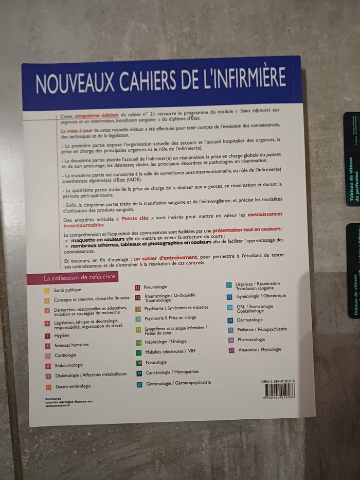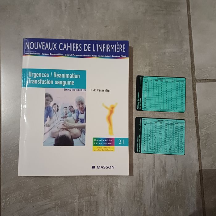 Nouveaux cahiers de l'infirmière : Urgences / Réanimation / Transfusion sanguine + 2 tableaux de vitesse de perfusion