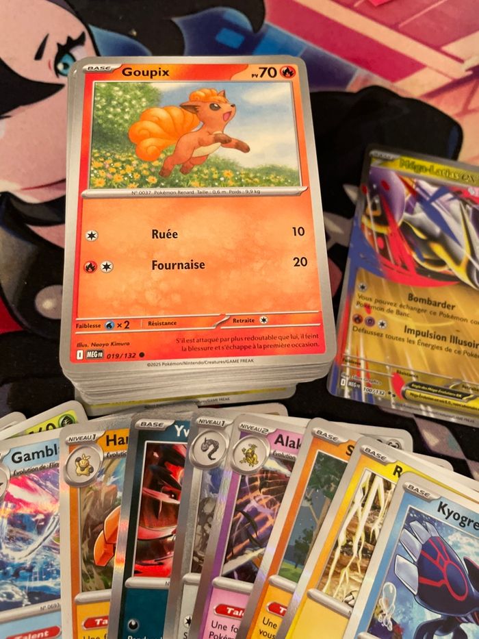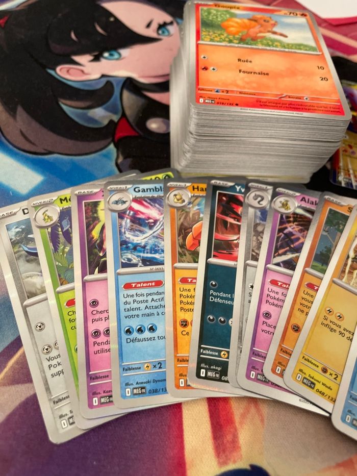 Lot de 115 cartes Pokémon mega évolution en état sorti de booster il n’y a aucun double et les cartes officielles et en français