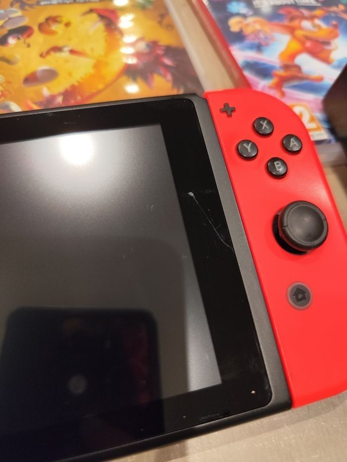 Rayure écran (cf photo) + un joystick abîmé par l'utilisation (cf photo).