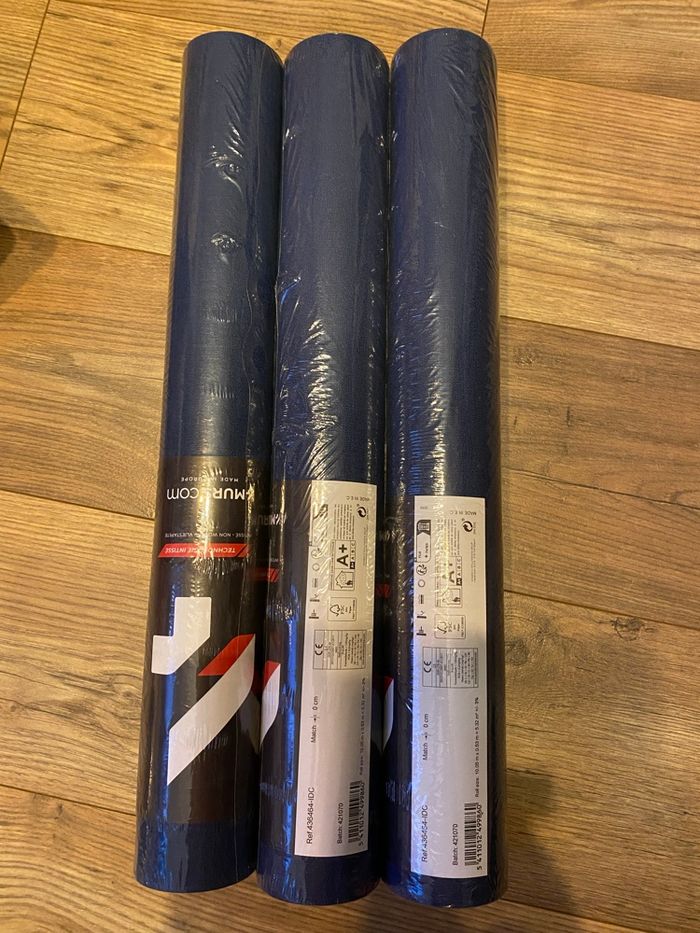 Lot 3 rouleaux tapisserie 4murs bleu jeans, neufs.