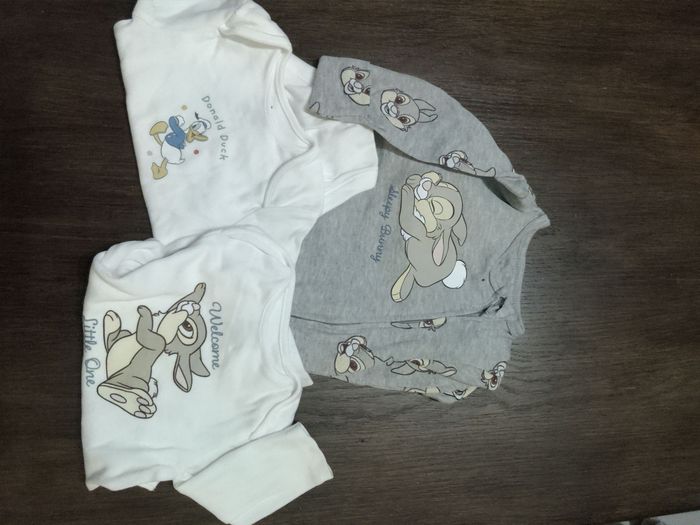 Un pyjama gris panpan Un body manches courtes Donald Un body manches longues panpan Baby Dysney primark 0-3 mois Neuf 5€