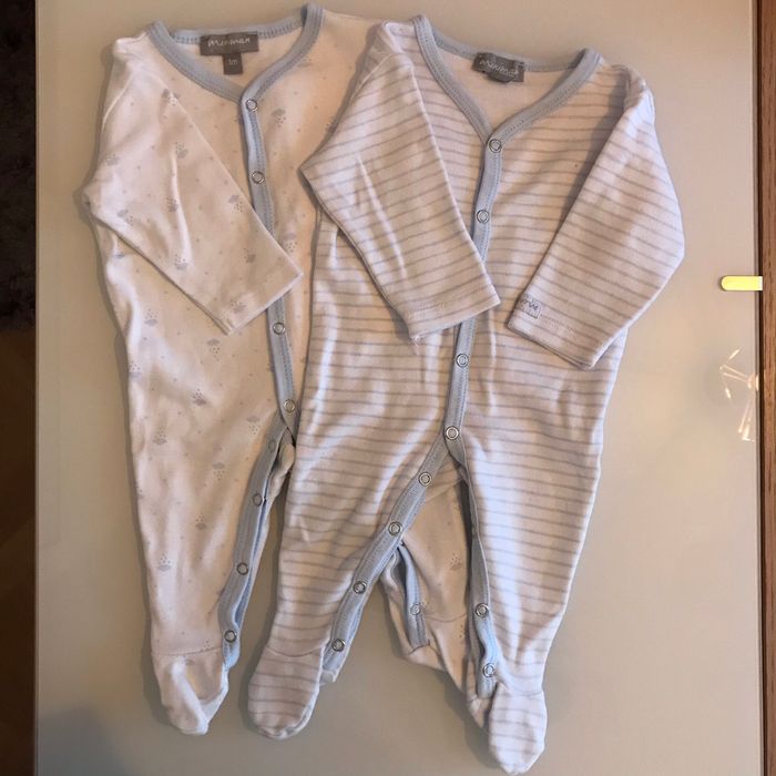 2 pyjamas en coton - taille 1 mois : - Blanc rayé bleu - Blanc nuages Marque MINIMAN