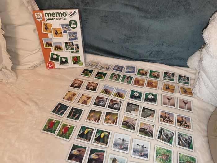 Jeu de mémory sur le thème des animaux sauvages. On place tout ou partie des tuiles (selon l'âge des joueurs) faces cachées sur la table. Chaque joueur à son tour retourne deux tuiles. Si elles sont identiques, le joueur garde la paire, si elles sont différentes il les replace à l'envers sur la table. Un memory avec beaucoup de tuiles et des belles photos qui s'adresse aussi bien aux enfants qu'aux séniors!