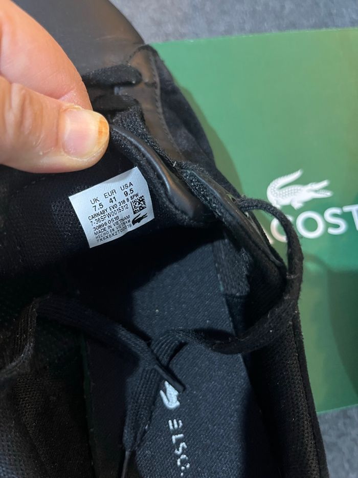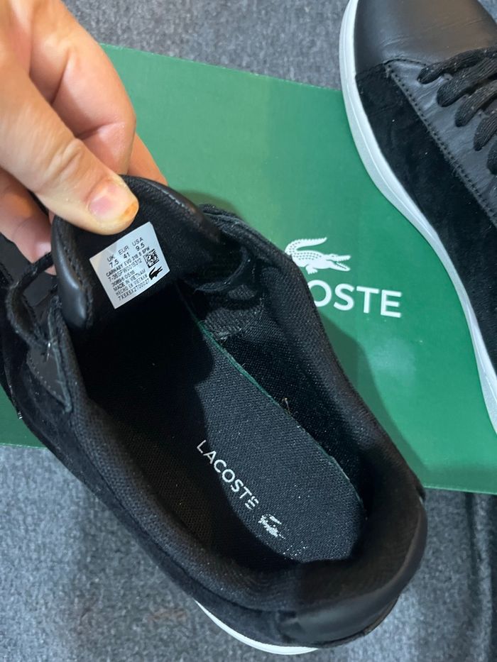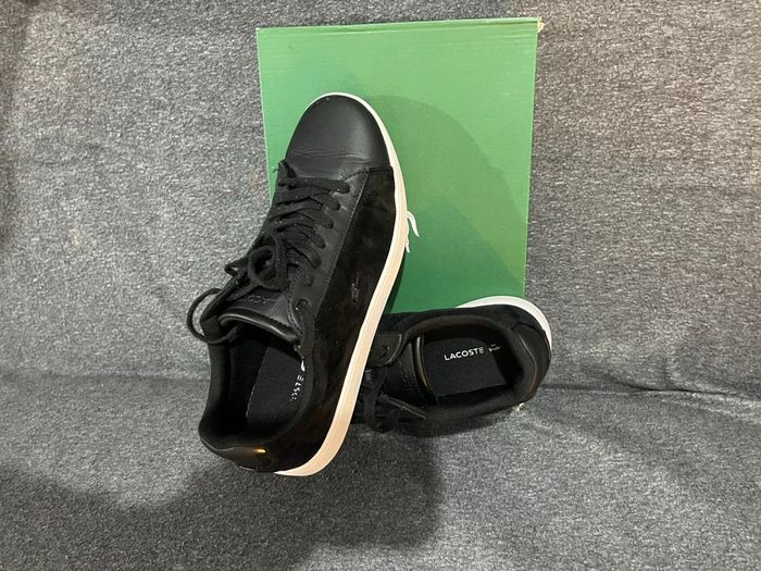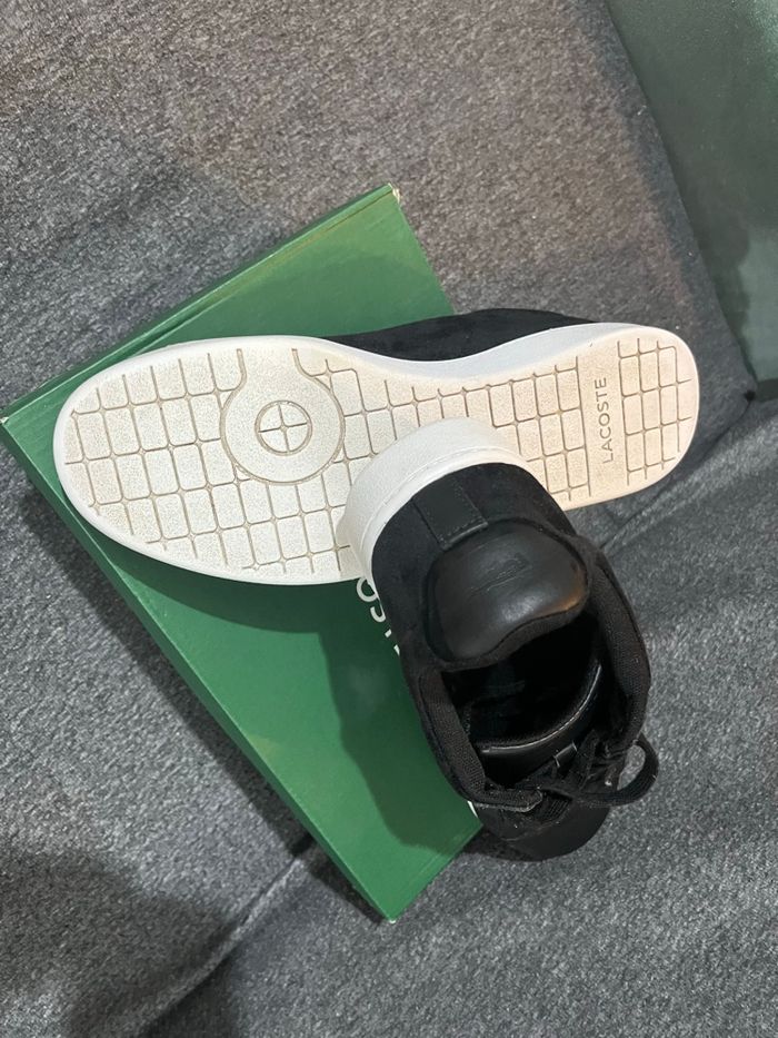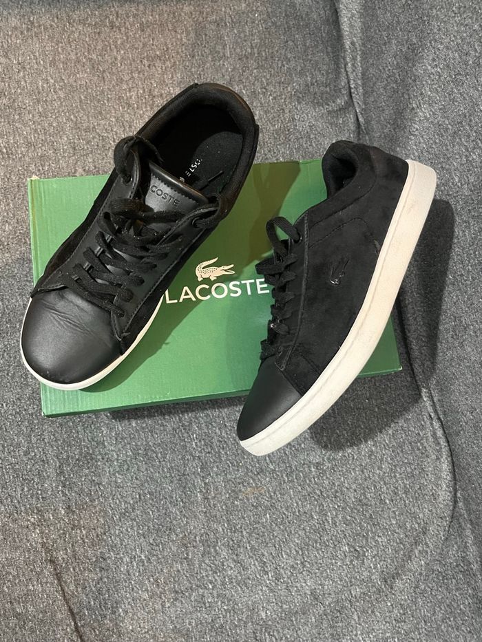 Des baskets noires Lacoste En très bon état général Une toute petite tache pas vraiment visible Pour plus d’informations me contacter Pointure 42