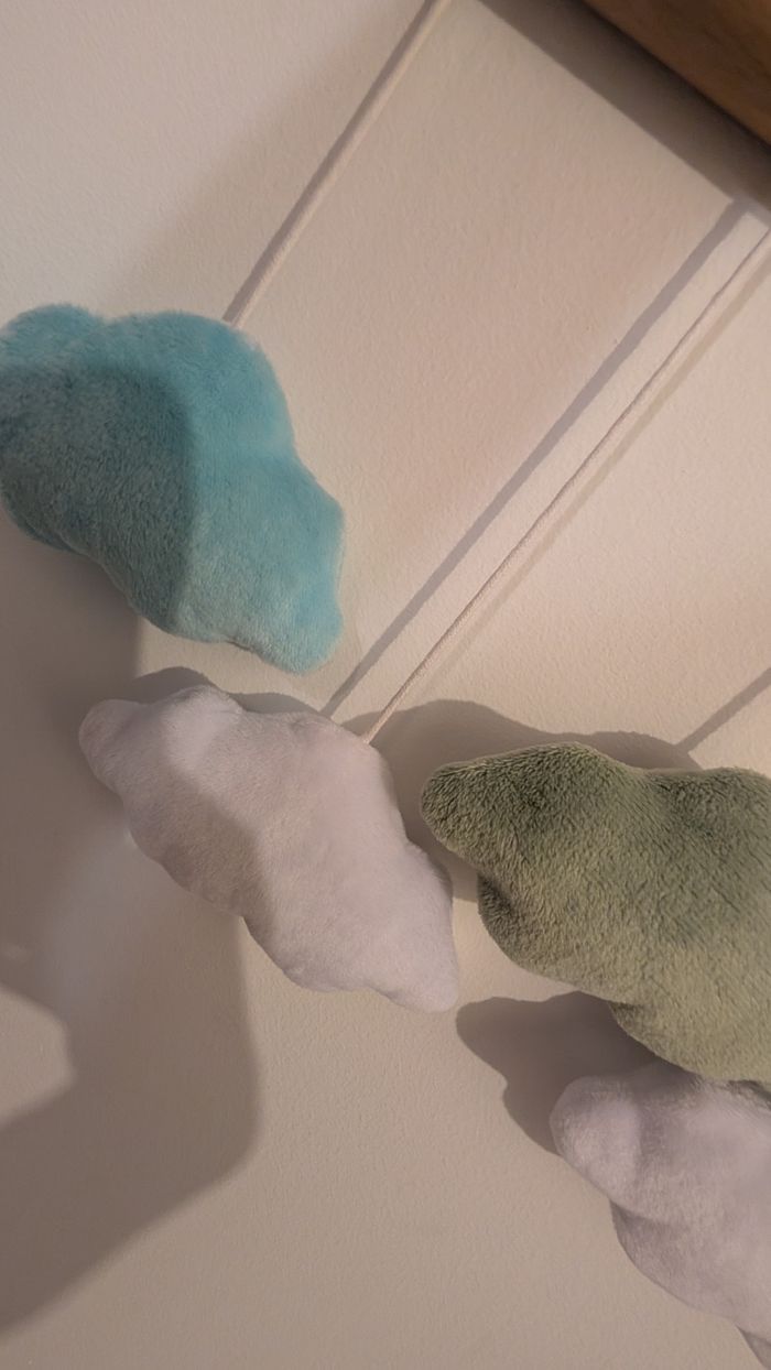 Mobile Nuages Le support en bois fait 35 cm Hauteur, une fois suspendu, 46 cm