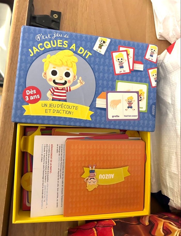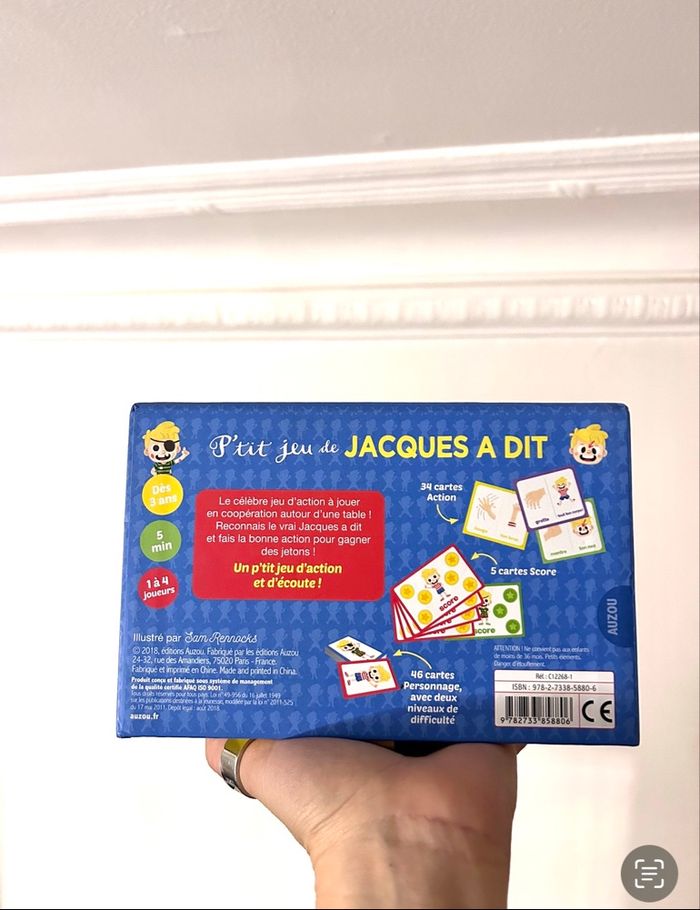 Je vends le jeu d'écoute et d'action "P'tit jeu de Jacques a dit" pour les enfants de 3 à 7 ans.
