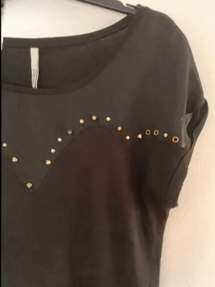 T-shirt  noir clouté  Taille S - photo numéro 5