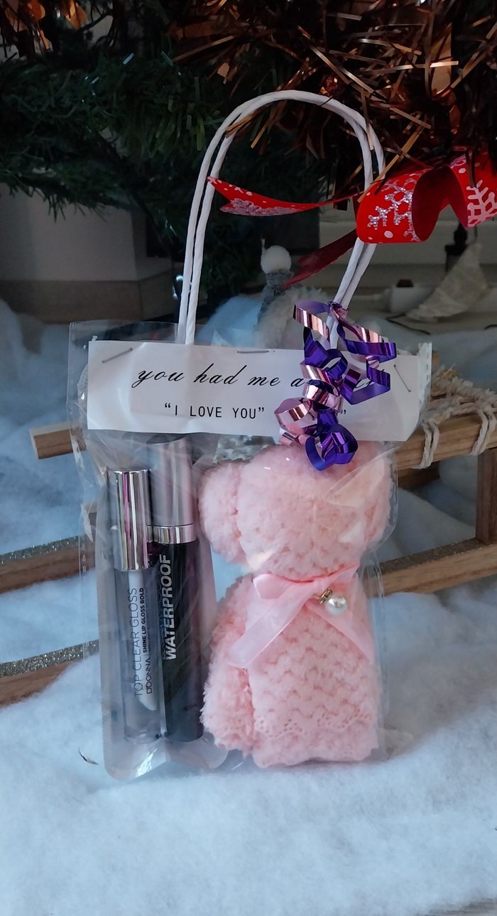 Pochette maquillage composée d'un Mascara waterproof noir, un gloss transparent et une serviette pour le visage 30x30cm. Prix ferme