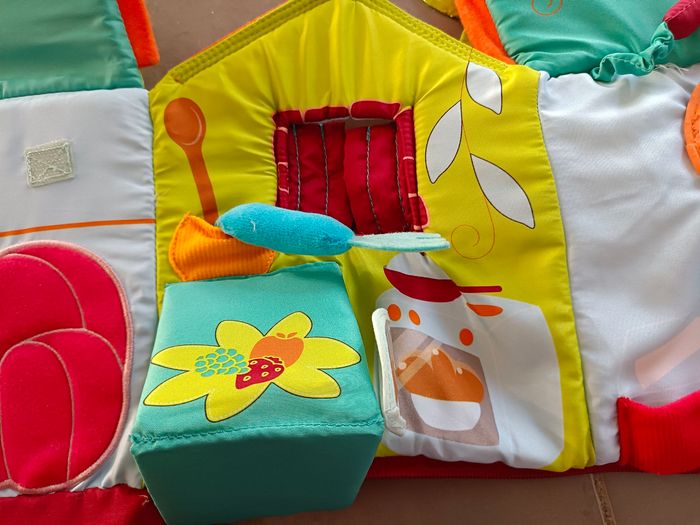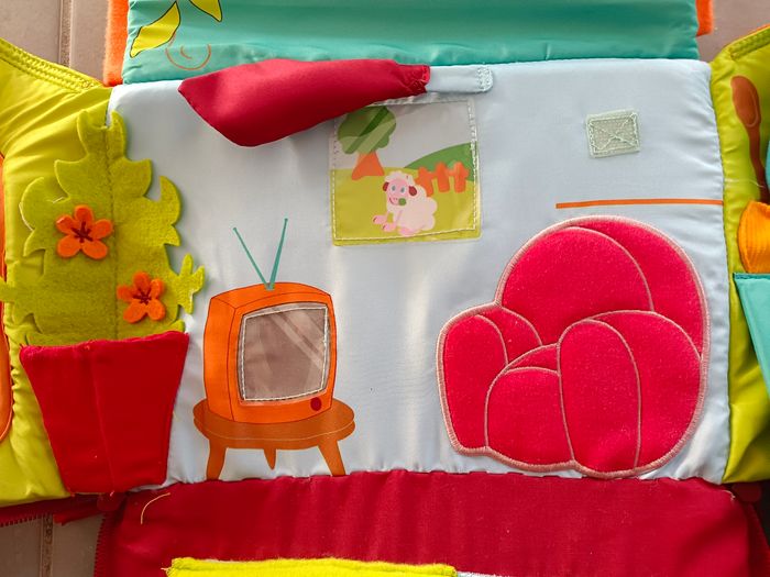 Si vous avez Sophie la girafe, elle est de taille parfaite pour jouer dans cette maison. Entièrement en textile pour plus de sécurité.
