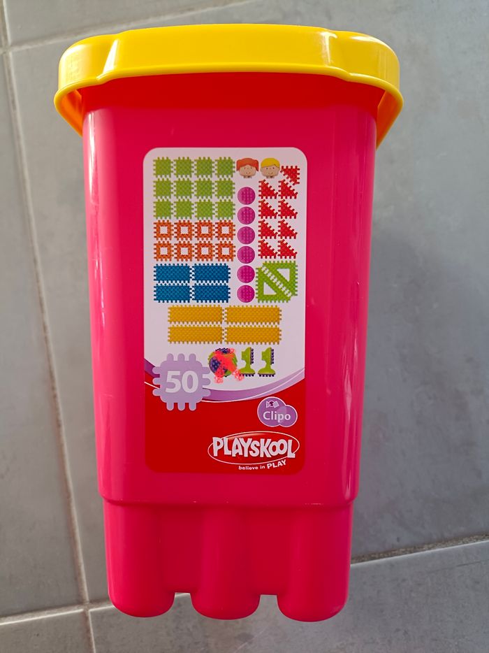 Le grand seau Clipo, avec sa plaque de couture, contient 49 pièces au lieu de 50 pour créer des figurines ou des constructions multidimensionnelles et peut également servir de rangement.