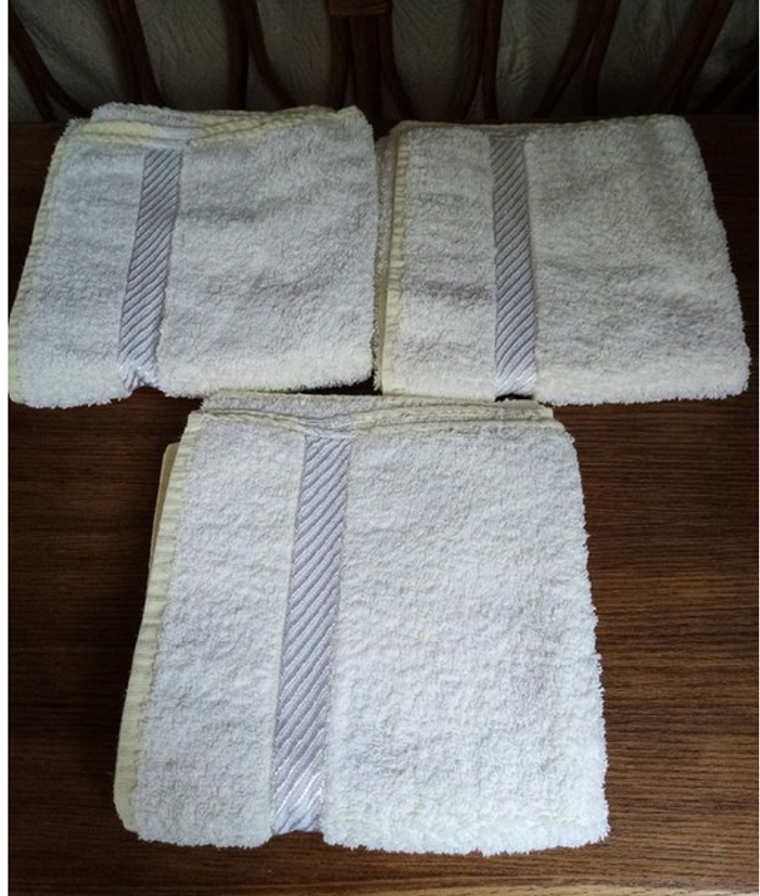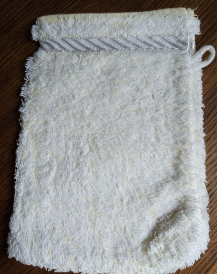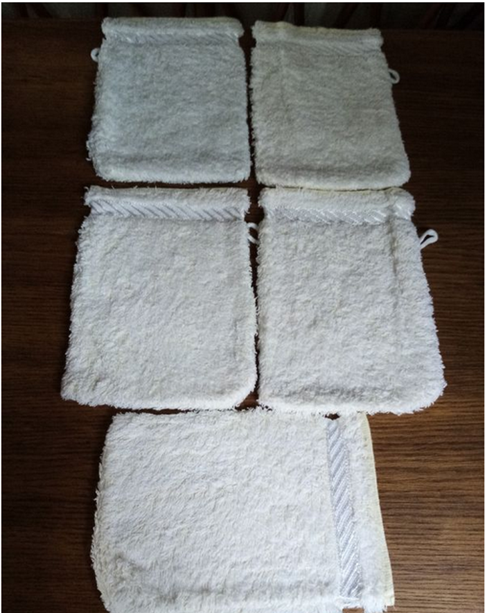 5 gants + 3 serviettes de toilette jaunes / blancs neufs