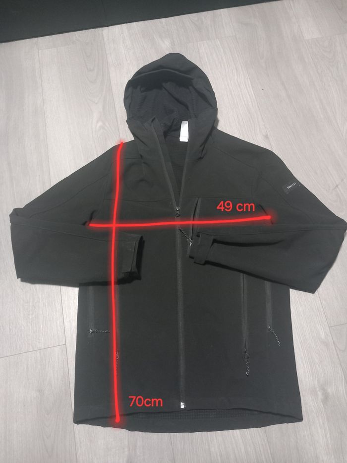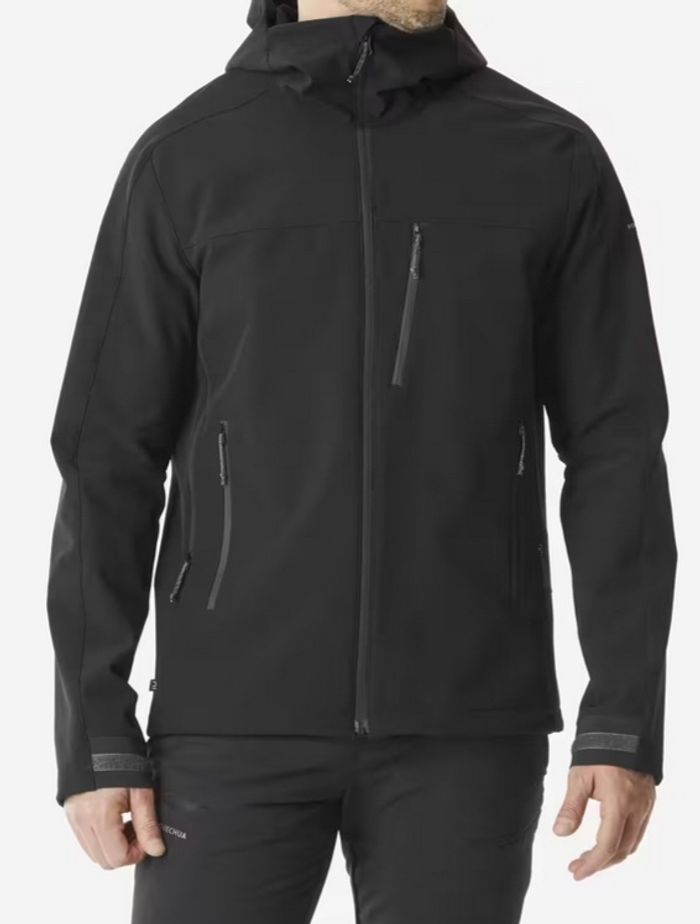 veste Quechua MT500 softshell, taille S, couleur noir. Idéale pour la randonnée et les sorties en plein air, elle est coupe‑vent, légère et respirante.