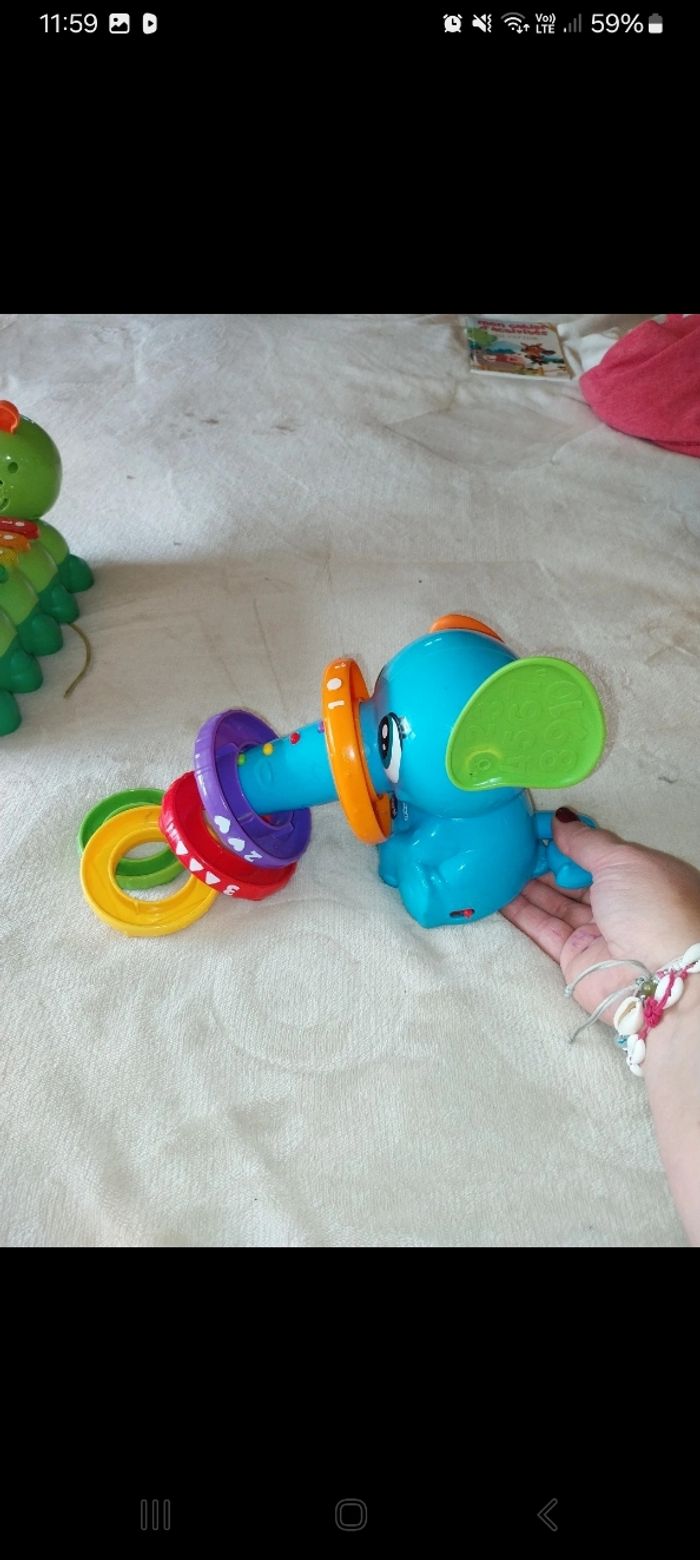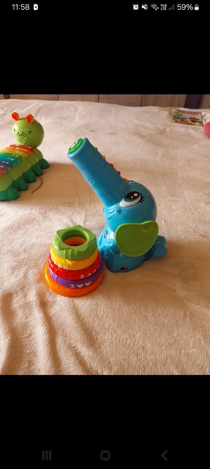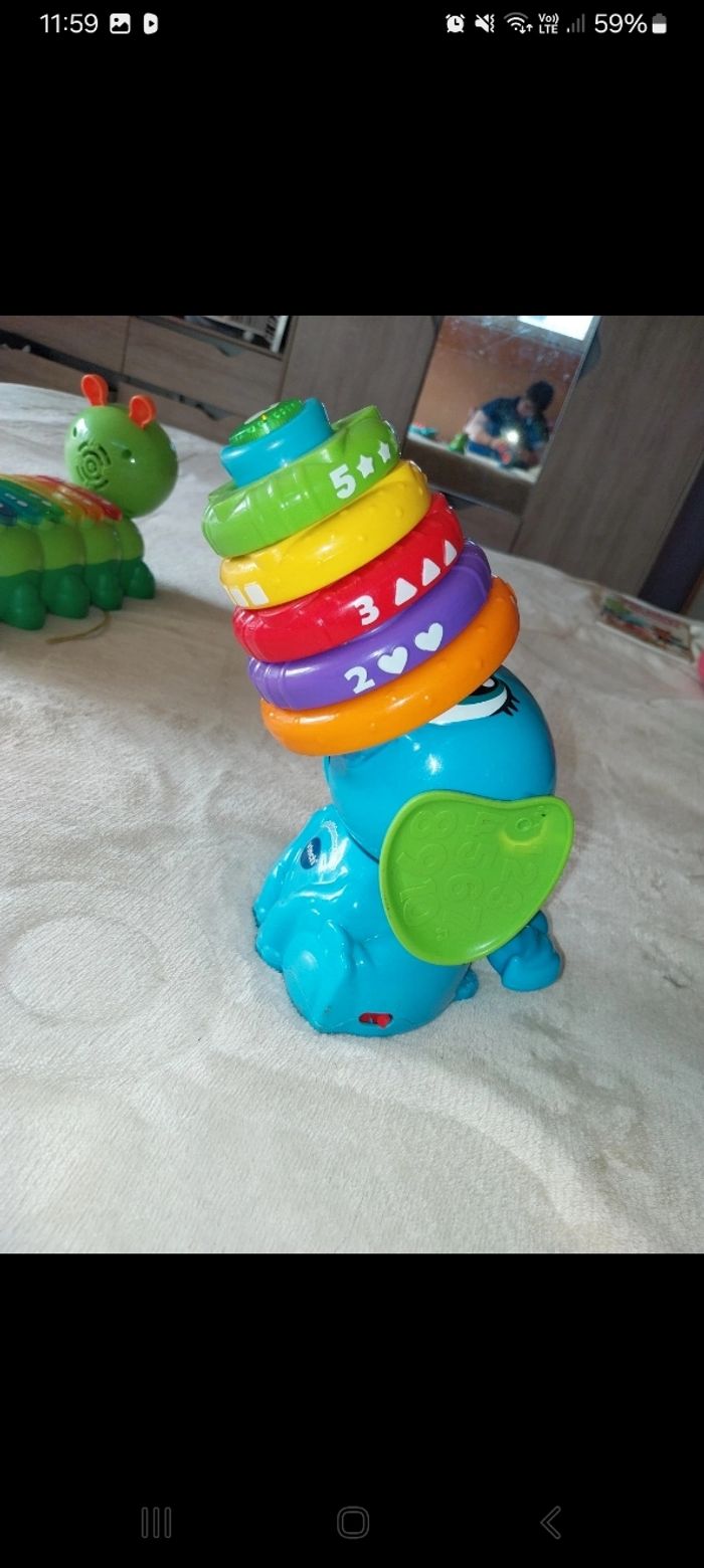 Lumineux et musical, petit éléphant rigolo qui compte les anneaux et les fait tomber. Decouvre les chiffres, les formes et les couleurs, encourage à empiler les anneaux sur sa trompe et à appuyer sur sa queue pour les faire tomber. 3 jolies chansons en appuyant sur la note de musique au bout de la trompe d’Empilo.