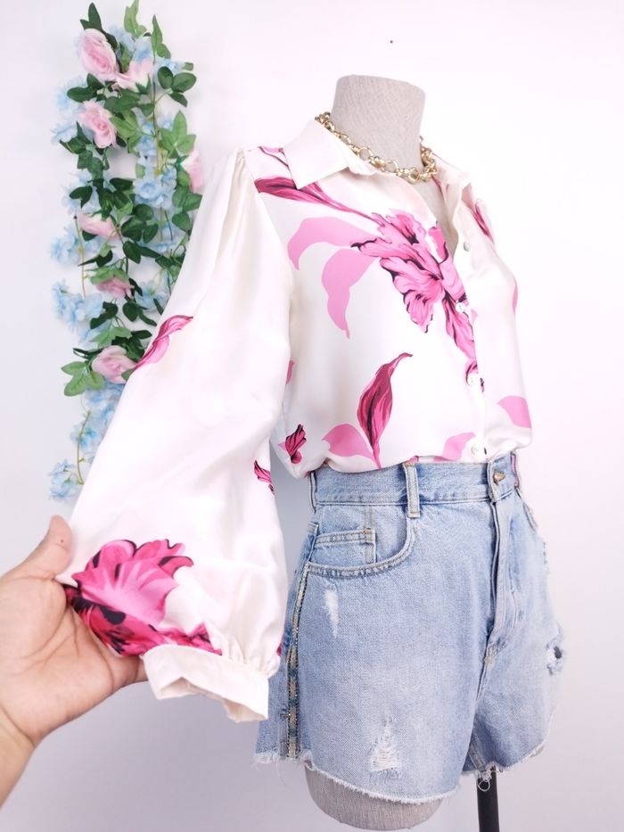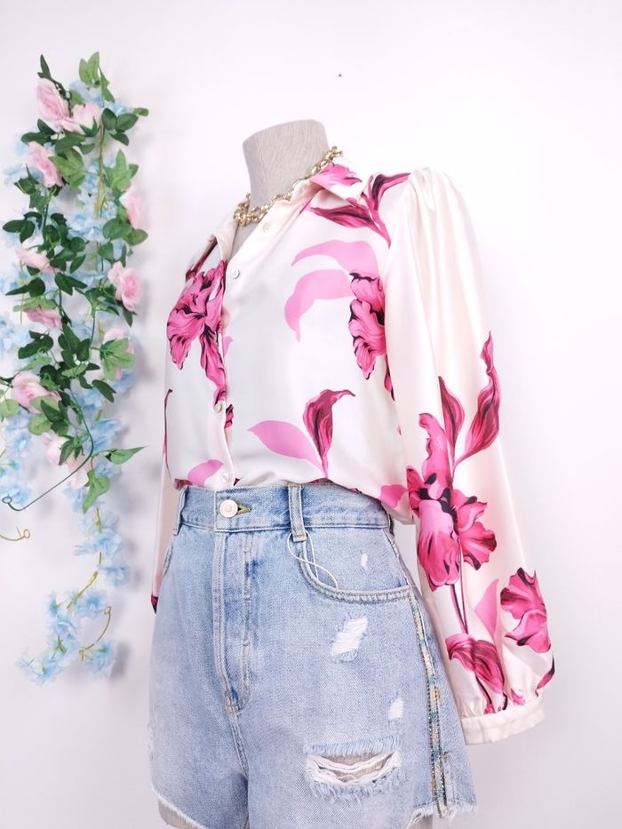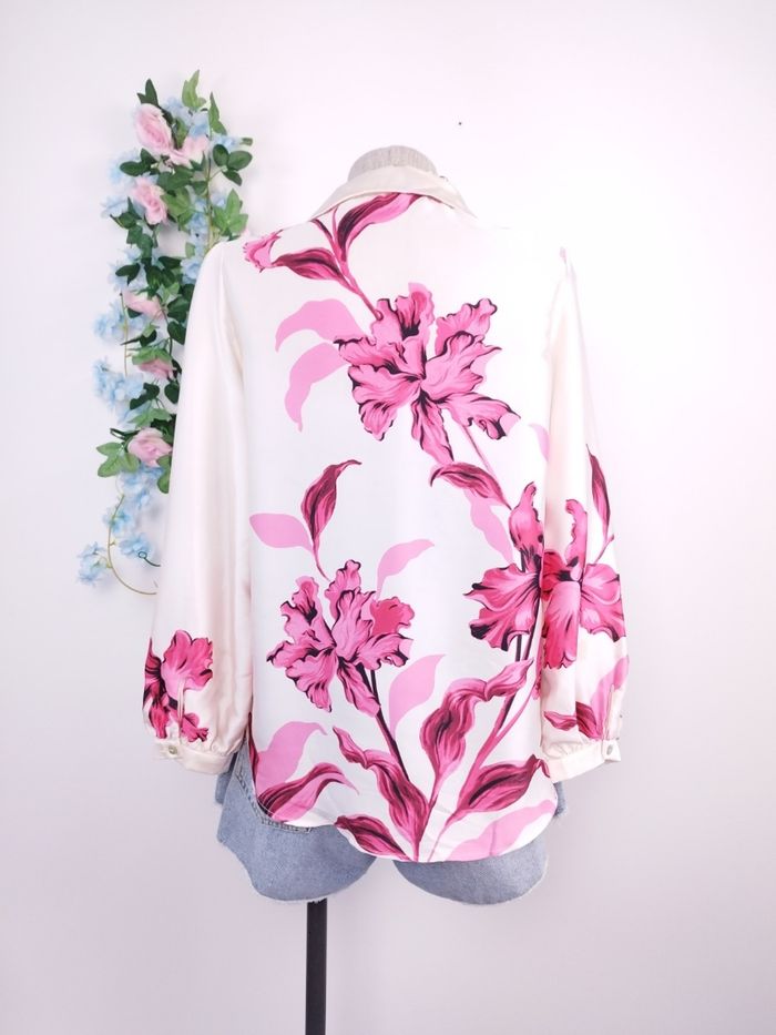 Chemisier Zara Imprimé Fleuire Satiné Rosé