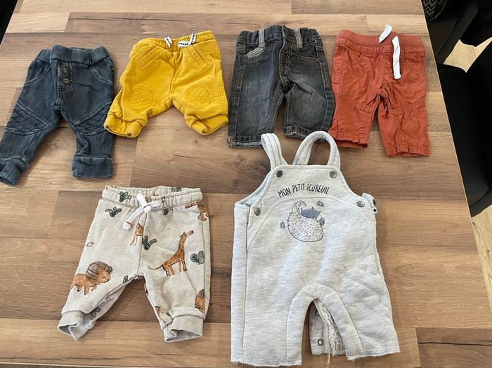 Lot 5 pantalons et 1 salopette chaude 1 mois Différentes marques
