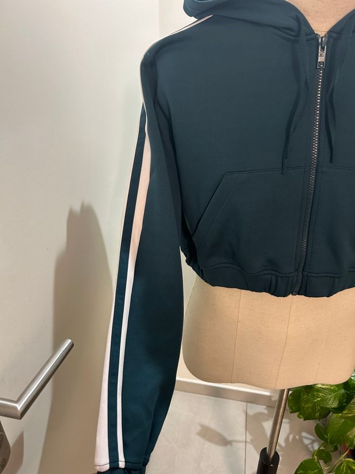 Sweat à capuche New Balance original, coupe courte (cropped), fermeture zippée. Couleur vert foncé avec logo NB blanc sur la poitrine et bande contrastante sur la manche. Style sportif et tendance, idéal pour le sport ou un look casual. ✔ Capuche ✔ Poches à l’avant ✔ Bas élastiqué ✔ Matière confortable et agréable à porter État : Neuf Taille : S Marque : New Balance Couleur : Vert foncé Style : Sport / Casual / Streetwear N’hésite pas à me contacter pour plus de photos ou d’infos 🌿