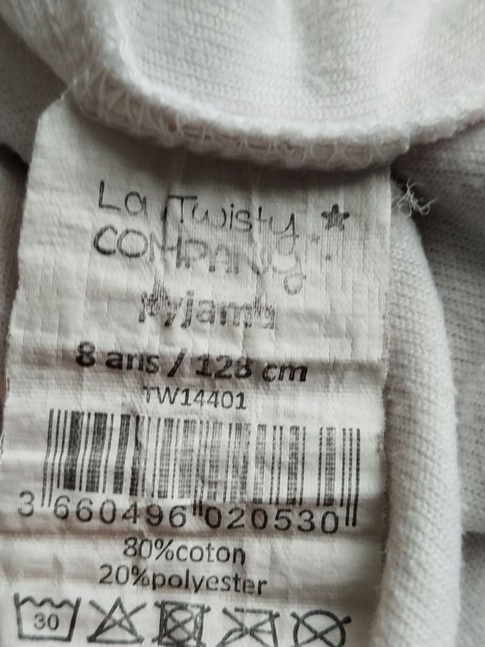 Pyjama blanc et rose motifs coeurs La twisty Company taille 8 ans