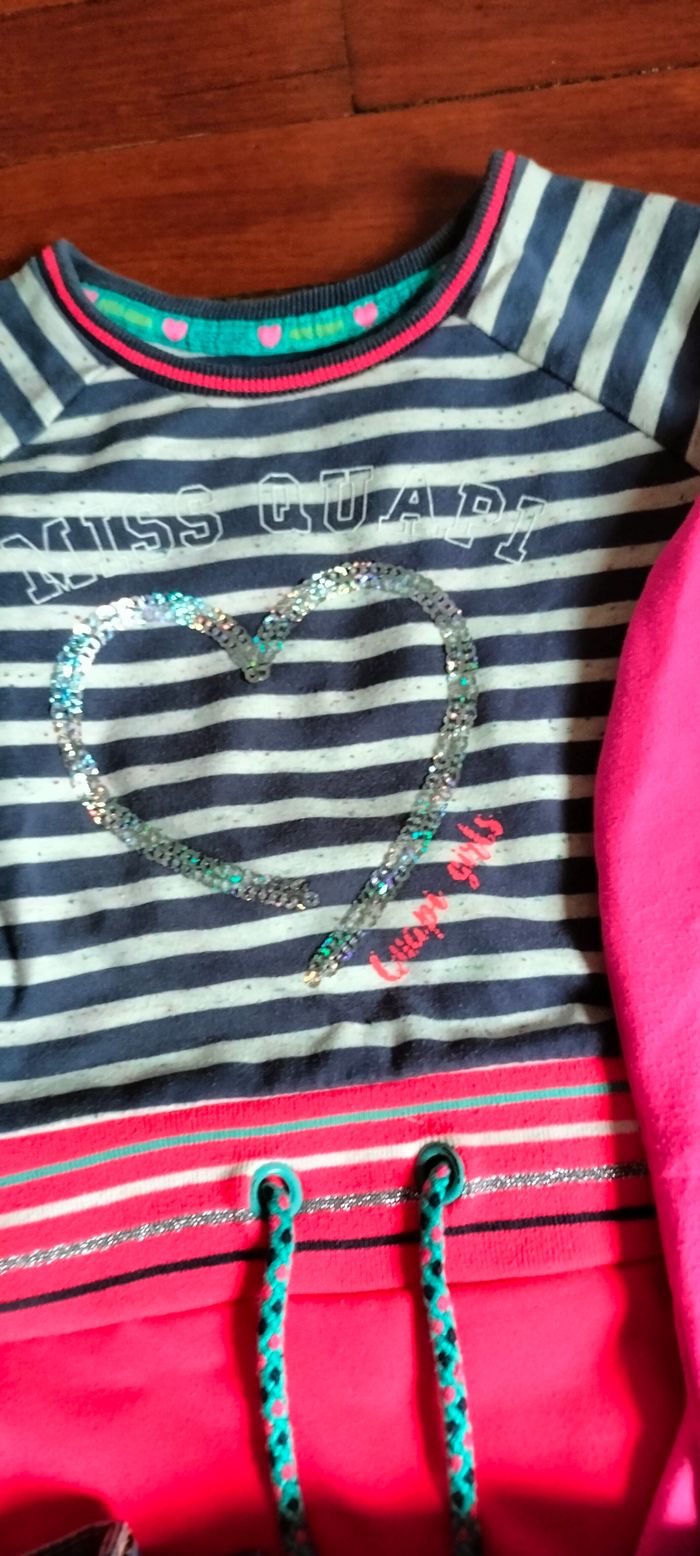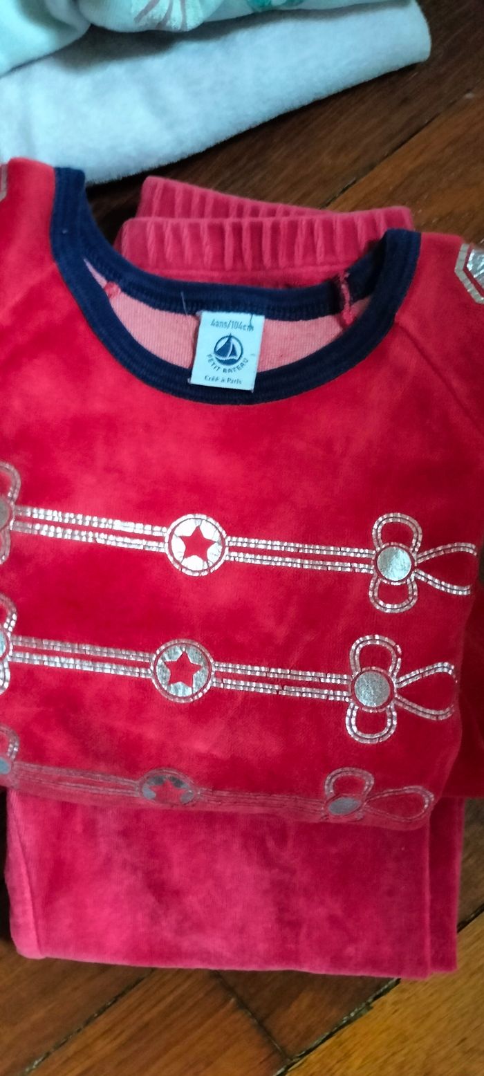 Lot composé de : 2 robes sportives manches longues 2 pyjamas en velours 2 pantalons dont 1 jean avec un petit trou (voir dernière photo) Tous les vêtements sont en état d'usage.