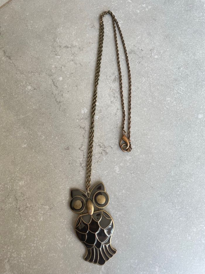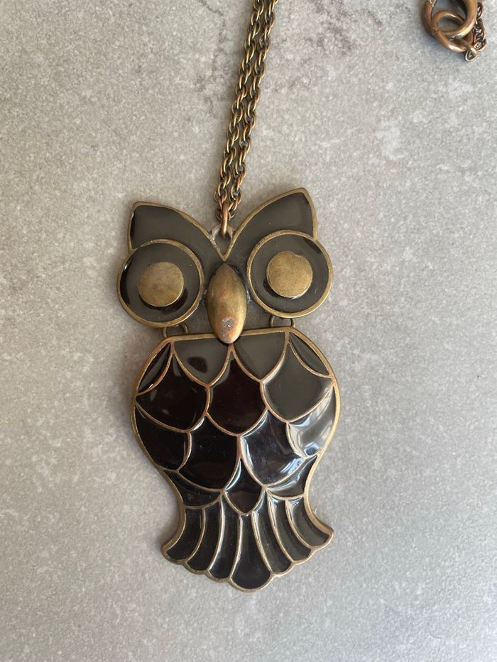 Très joli collier Long, style sautoir Chouette / hibou noir et marron Métal Petit défaut sur le bec mais se voit peu (voir photo) #stefetjuju51accessoires maison non fumeurs bien d’autres choses dans mon dressing de nouveaux articles très régulièrement nombreux # dans mon profil pour faciliter vos recherches merci pour votre visite et belle journée 😊 #sautoir #collier #hibou #chouette #idee #cadeau #long #metal
