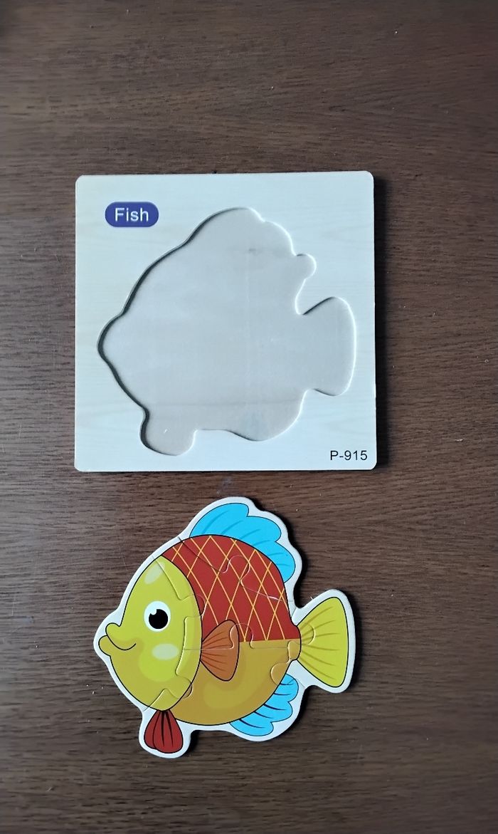 Puzzle en bois ,poisson ,Montessori, 5 pièces