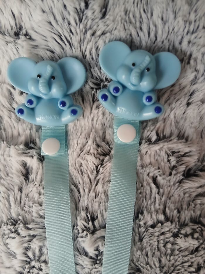 2 Accroche-tétine "Petits Éléphants " *IDENTIQUES