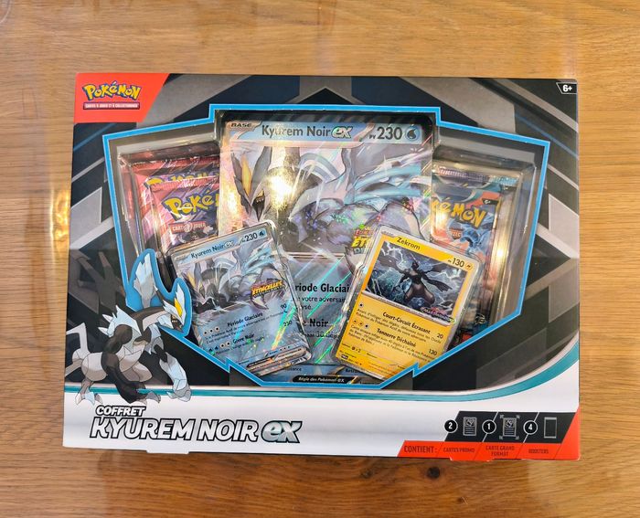 A vendre Coffret Pokémon Kuyrem noir ex neuf. Coffret exclusif Intermarché. 1 carte stamp de Kyurem Noir ex (SSP 048) 1 carte holo stamp de Zekrom (PAR 066) 1 carte grand format (jumbo) stamp de Kyurem Noir ex (SSP 048) 4 boosters : x2 EV10 "Rivalités Destinées", x1 EV04 "Faille Paradoxe" et x1 EV03 "Flammes Obsidiennes" Envoi rapide et soigné sous papier bulle.