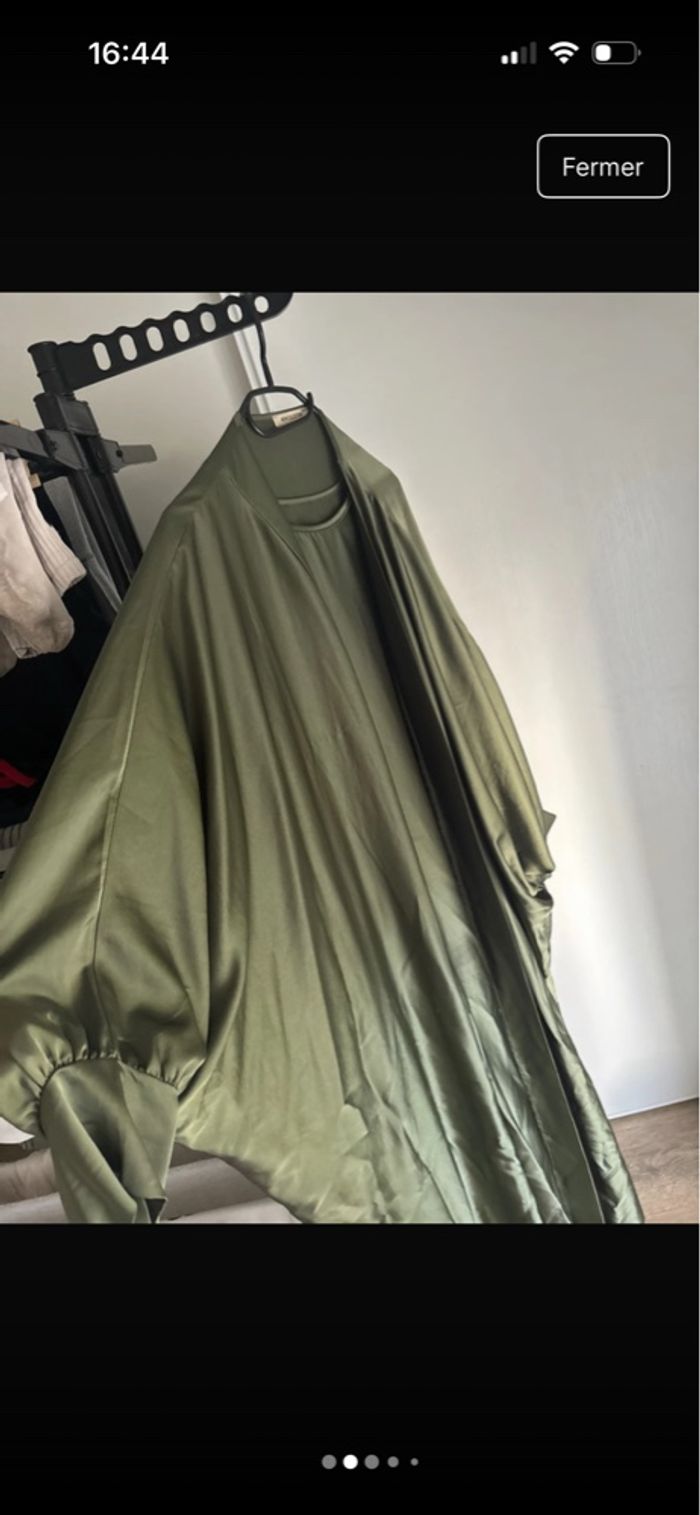( l’effet un peu froissé en bas de la abaya , c’est juste elle était pliée. Du coup, elle s’est un peu froissée, mais sinon avec un coup de fer à repasser le rendu est meilleur.)