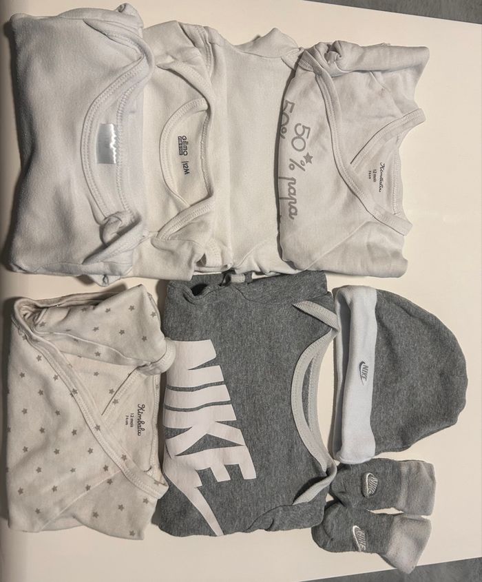 6 bodies + 1 bonnet + 1pairs de chaussettes Différentes marques 12M