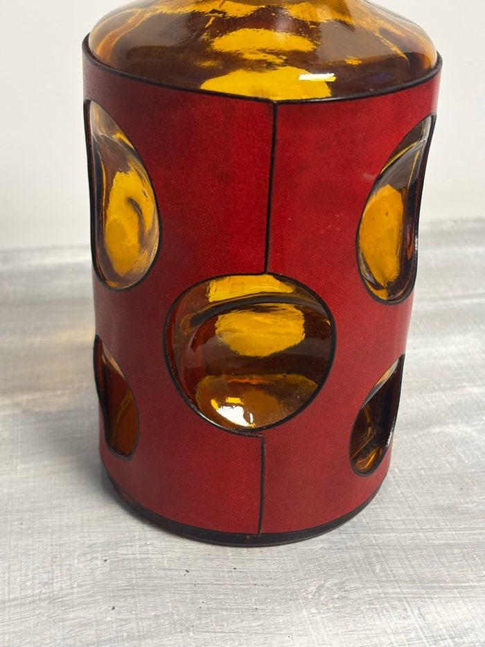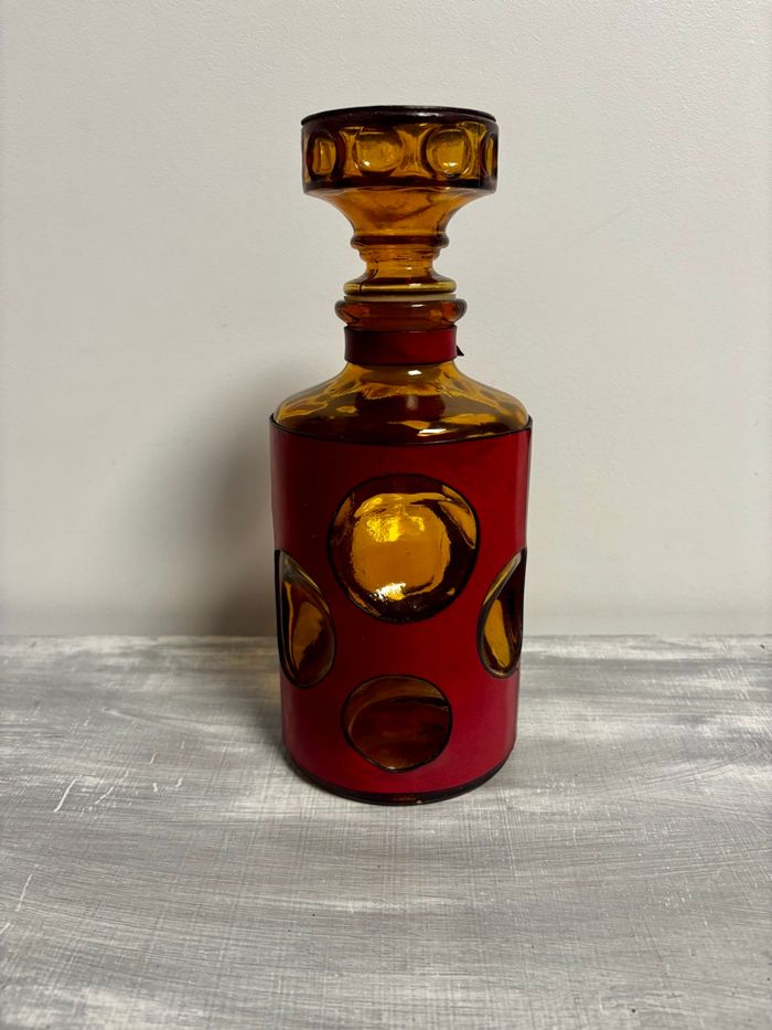 Vintage carafe italienne marron ambré et rouge