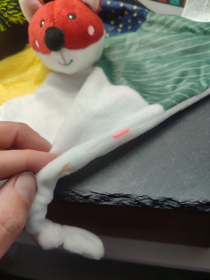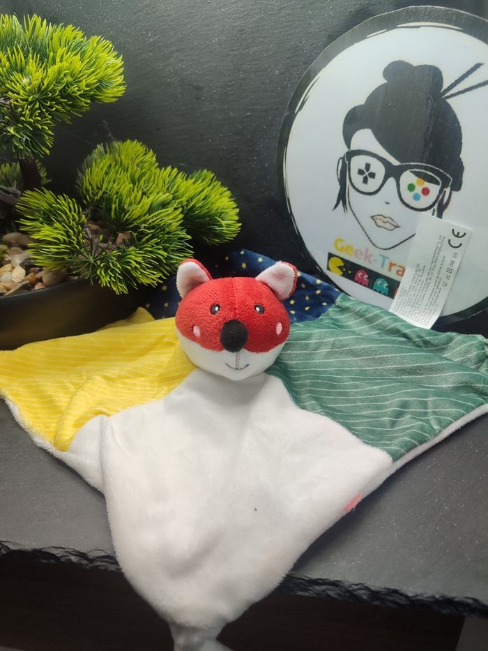 Doudou plat renard rouge bleu vert jaune blanc rayé étoiles dynamic Sc Consys