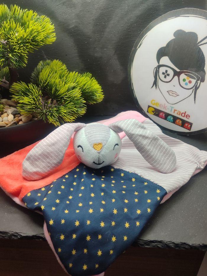 doudou plat lapin blanc bleu rose gris étoile sc consys Orange Carré Noeud Rayé