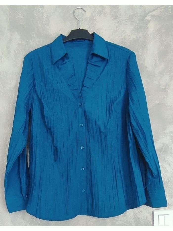 Chemisier façon satin froissé taille 44-46 bleu canard - photo numéro 1