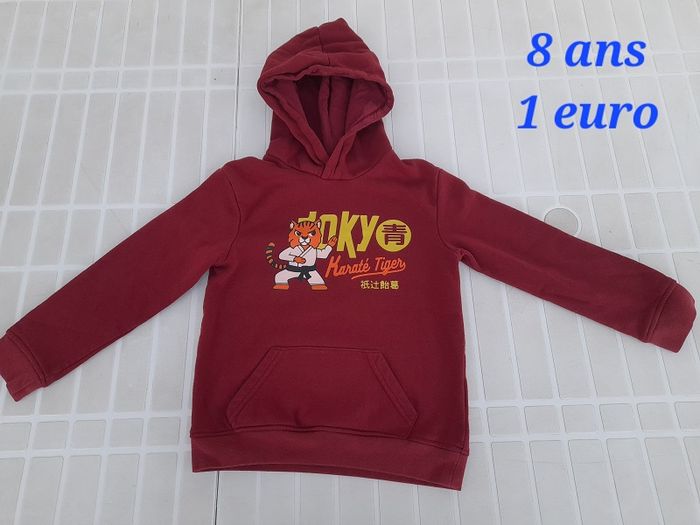 - le pull à capuche : marque Tissaia, bouloche un peu et le flocage part un peu, 1 euro