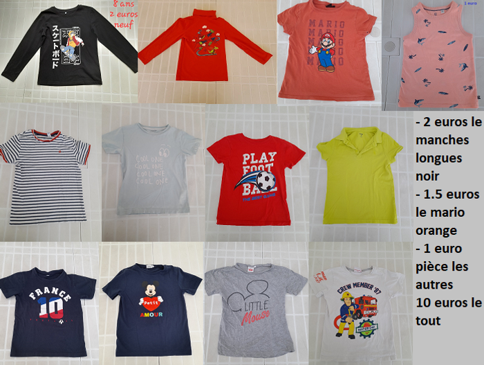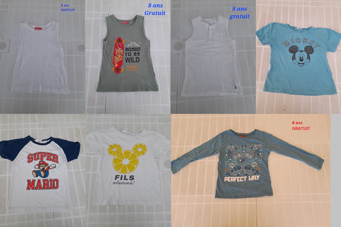 - les t shirts de la 3ème photo : offerts pour achat du lot car abîmés